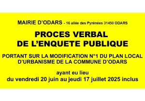 - Sur support papier à la Mairie d’ODARS où s’est déroulée l’enquête publique aux jours et heures habituels d’ouverture
